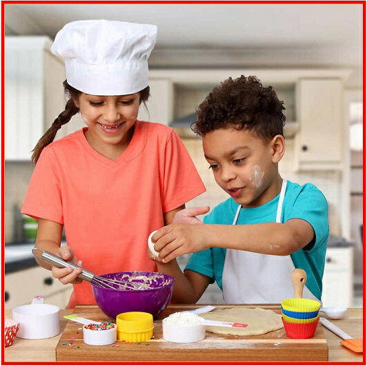 クリエイティブキッチン ジュニア シェフ クッキングセット 本格的な35ピースセット 家族でお菓子やクッキー、ケーキ作りにチャレンジ! 本格的にお料理が出来ちゃう子供用クッキングセット シェフのエプロン シェフの帽子 木製スプーン スパチュラ 泡立て器 プラスチックナイフ ブラシ 木製スタンプハンドル 4つのクッキースタンプ クッキーカッター 5カップケーキライナー 4つのカップケーキの型 1 - 6 "ケーキパン 1 - 6 "ミキシングボウル 5ピース計量カップセット 5点測定スプーンセット レシピブック ●食洗機使用可能 ●対象年齢6歳以上 ●原産国:中国 ※ラッピングサービスは不可商品となっております。