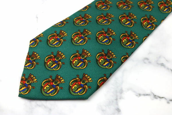 エムシーエム MCM 紋章柄 シルク イタリア製 総柄 グリーン シルク ブランド ネクタイ 送料無料 【中古】【美品】
