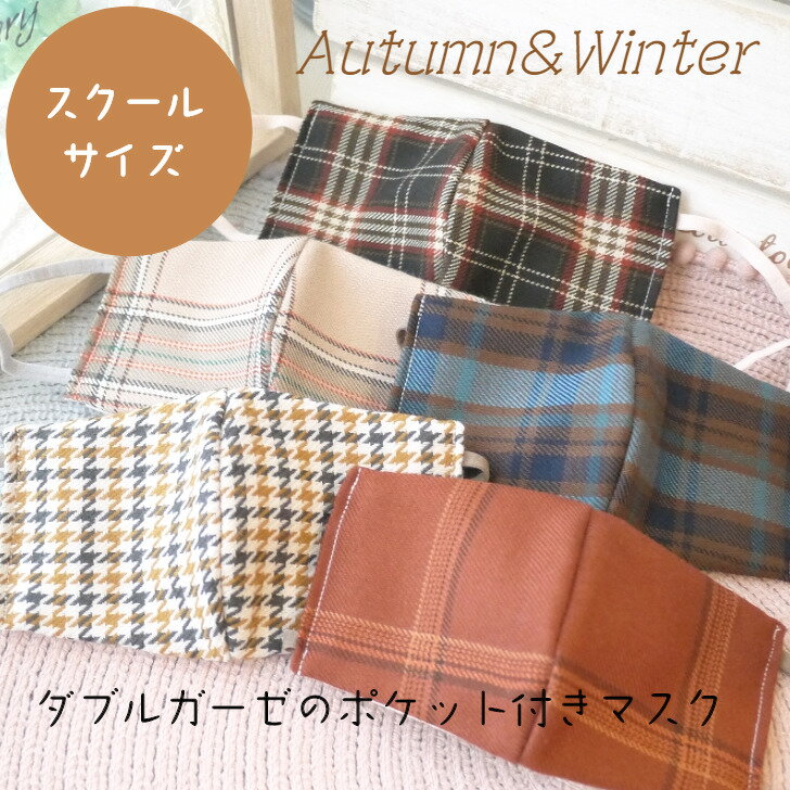 スクール秋冬マスク ショコラチェック ガーゼポケットマスク】小学生 日本製 オータム 小さめマスク おしゃれ 子ども コットン100%/ガーゼ/フィルター