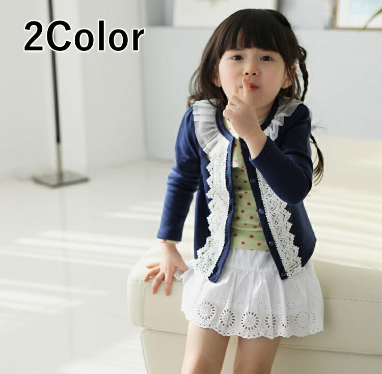 送料無料 長袖カーディガン 子供服 トップス 春 秋 冬 チュールフリル レース プチプラ 女の子 女児 キッズ 小学生 前ボタン 可愛い ガーリー ロマンティック 羽織り100cm 110cm 120cm 130cm 140cm