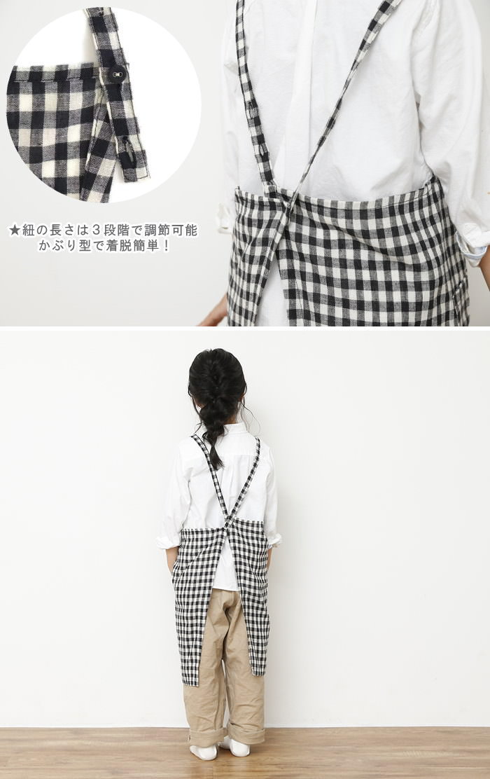 被り型で着脱簡単!左右にはポケットが付いて機能的! 肩ひもの長さは3段階で調節可能! 通気性に優れ清潔感のあるコットンリネン素材は 洗いをかけるたびに肌に馴染む風合いを楽しめます。