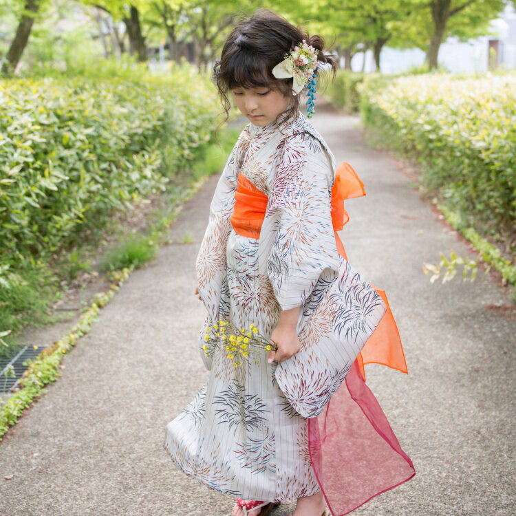 子供 浴衣 3点 セット ( 浴衣 帯 下駄 ) キッズ 浴衣 子供 女児浴衣 女の子 浴衣セット おうち時間 幼稚園 保育園 お祭 お遊戯 七夕 こどもゆかた 腰紐付き 100cm 110cm 120cm KIDS 3才〜10才 古典柄 大正浪漫 レトロ かわいい くすみカラー ナチュラル