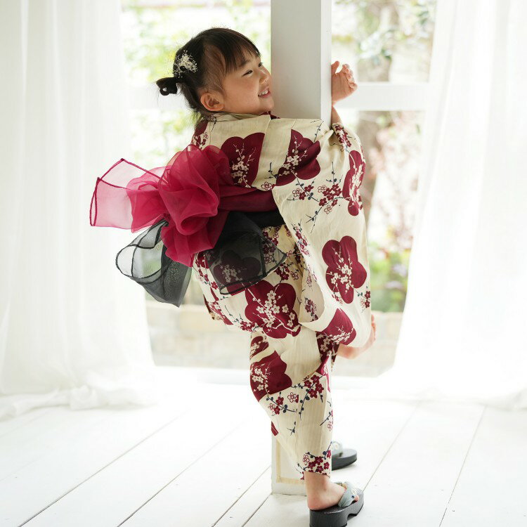 浴衣 子供 セット 女の子 浴衣セット 3点セット 浴衣+兵児帯+下駄 キッズ浴衣 ボヌールセゾン ピンク 椿 ツバキ POP 綿 紅梅織り 夏祭り 花火大会 女児 仕立て上がり 【110cm】【120cm】【130cm】【あす楽対応】